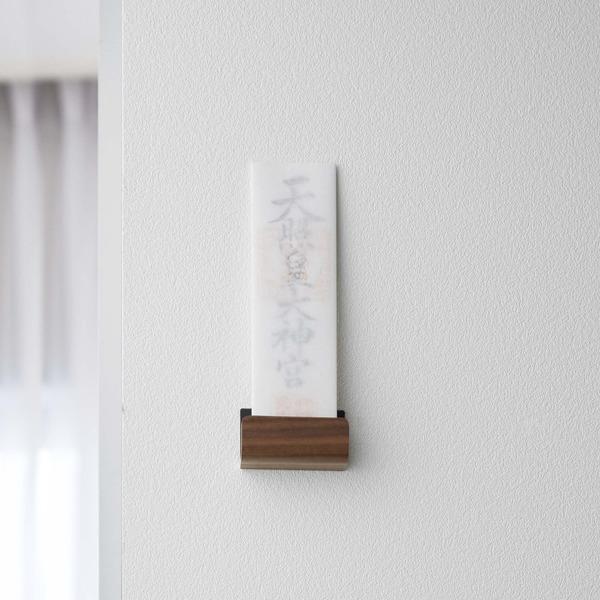 お神札を飾ることが出来る木目が美しい神札ホルダーです。神棚が無いご家庭で置き場に困っていたお神札を収納する事が出来ます。