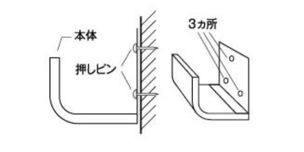 | 備考 | 設置可能な場所:柱、かもい、板壁、プリント合板(裏側に水平にサンがある場所) 押しピンで固定可能(※取り付け用ピンは付属していません) |