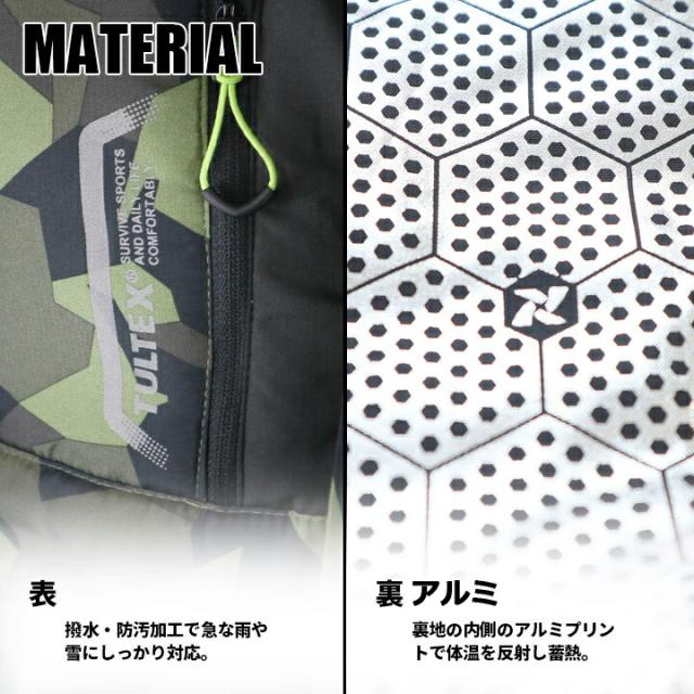 防風+裏アルミ中綿仕様で暖かさをキープ冷たい風をブロック