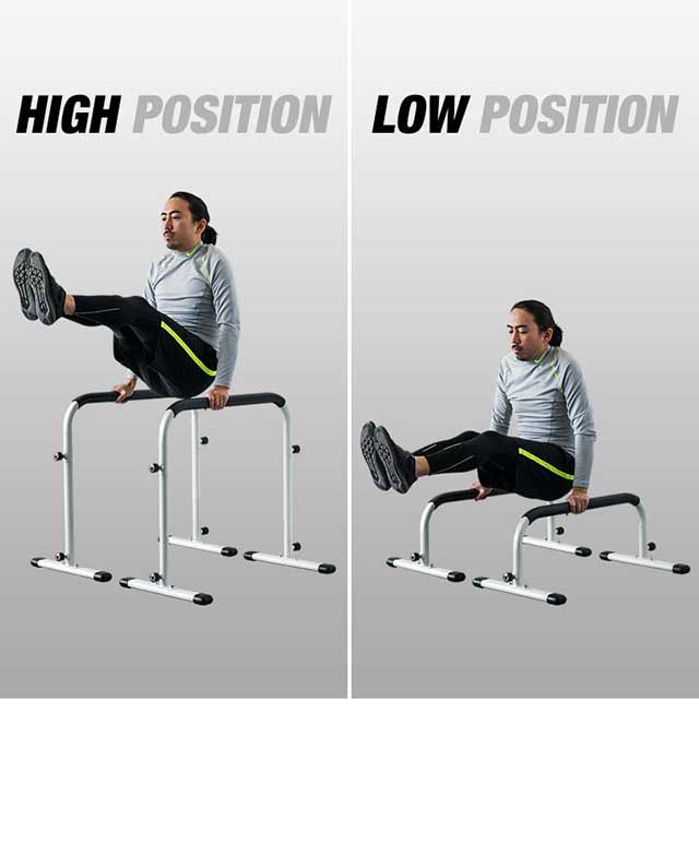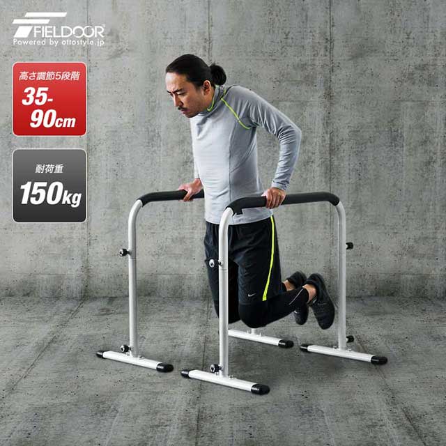 ディップススタンド 耐荷重150kg 高さ調節5段階 ハイ/ロー 35〜90cm エクササイズ 自重トレーニング 上半身 高負荷 筋力 フィットネス 筋トレ エクササイズ 家トレ ジム シェイプアップ ディップス スタンド FIELDOOR ディップスタンド 送料無料