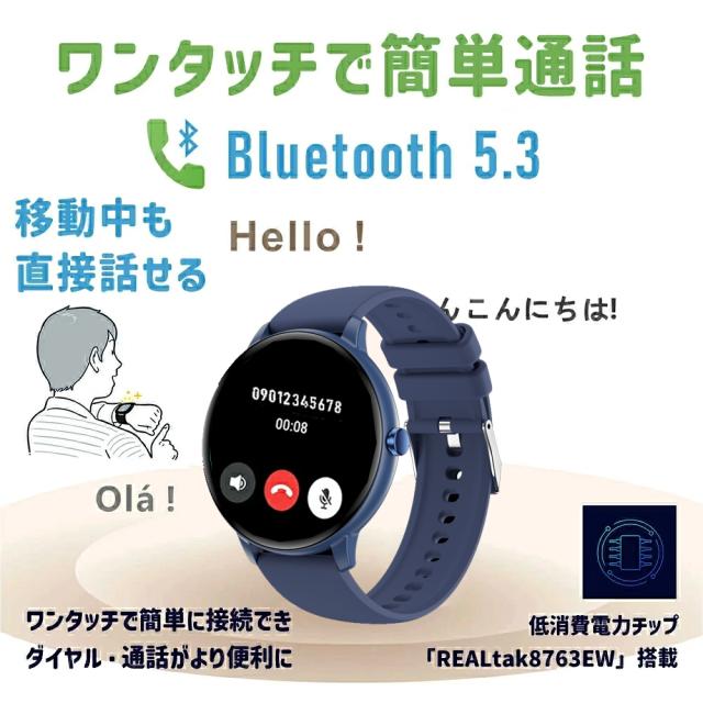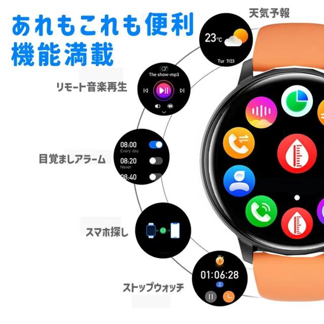 クーポン利用で3980円スマートウォッチ 通話機能 日本製センサー 心拍 歩数計 丸型 IP68防水 日本語 着信通知 睡眠計 睡眠検測 アラーム 時計 iphone android 対応
