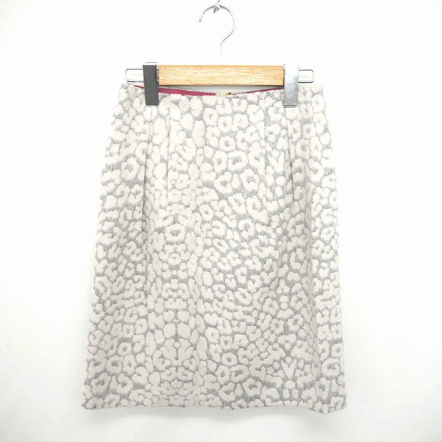 【中古】ノーリーズ Nolley's スカート タイト ひざ丈 総柄 バックジップ アルパカ混 ウール混 34 ベージュ グレー