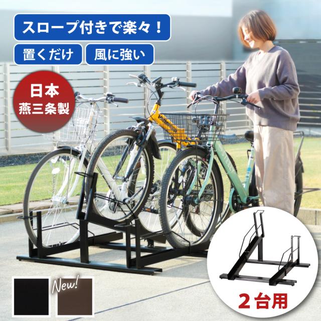 日本燕三条製 自転車スタンド 自転車ラック サイクルスタンド サイクルラック 選べる2色 ブラック ブラウン 黒 茶 工事不要 スロープ付き自転車ラック 2台用 EX202-02