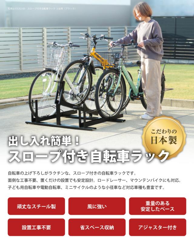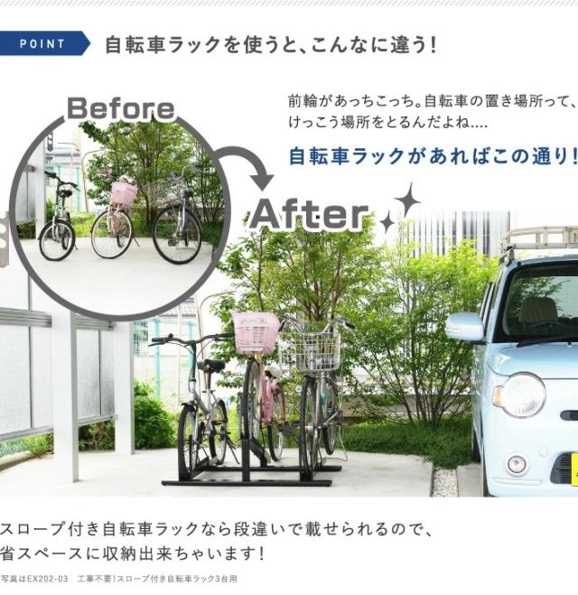 自転車の上げ下ろしがラクチンなスロープ付きの自転車ラックが面倒な工事一切不要で新登場!