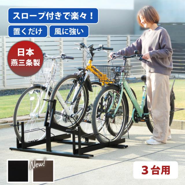 日本燕三条製 自転車スタンド 自転車ラック サイクルスタンド サイクルラック 選べる2色 ブラック ブラウン 黒 茶 工事不要 スロープ付き自転車ラック 3台用 EX202-03