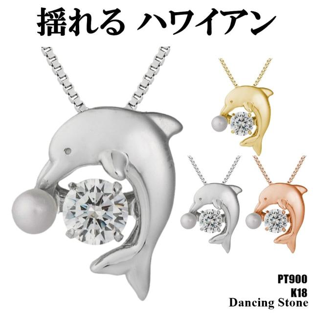 【特注モデル】ダンシングストーン ネックレス レディース PT900 プラチナ K18 18金 ピンクゴールド イエローゴールド コーティング SV925 シルバー ベネチアン チェーン ハワイアン ジュエリー ドルフィン ZHP5 ブランド 人気