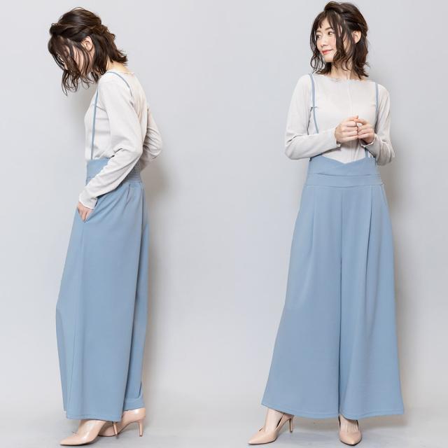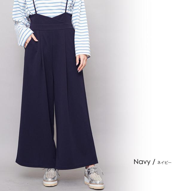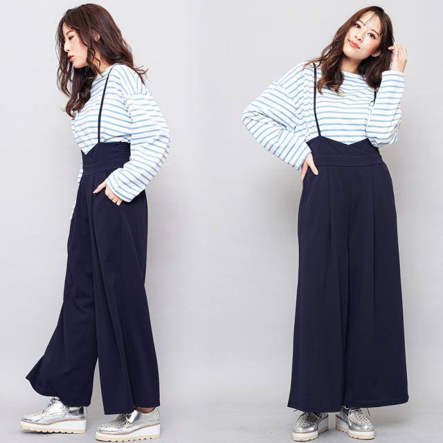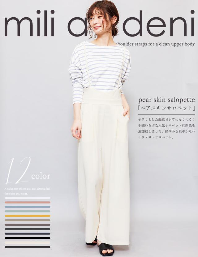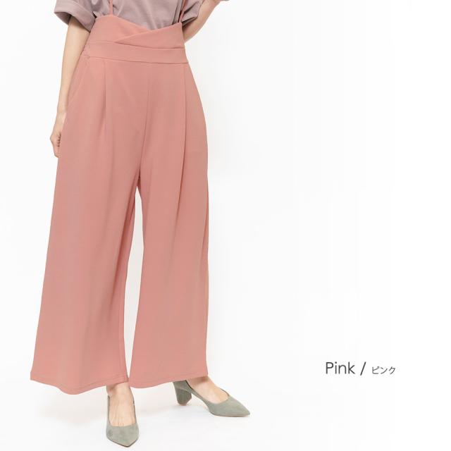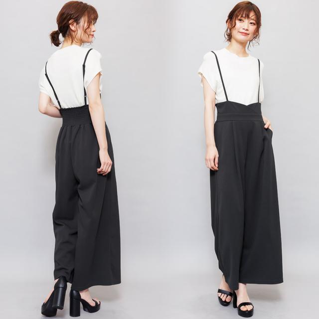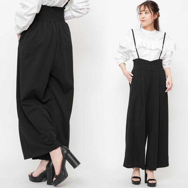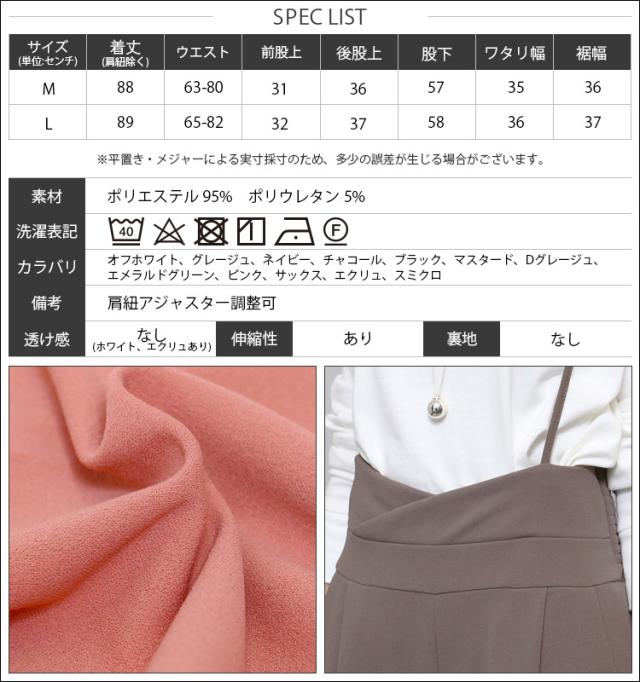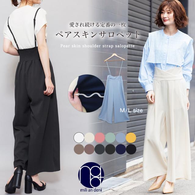 春新作 肩紐オールインワン コンビネゾン サロペット オールインワン ペアスキン ワイドパンツ M L レディース 春夏 ミリアンデニ メール便(郵3) p72106