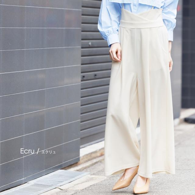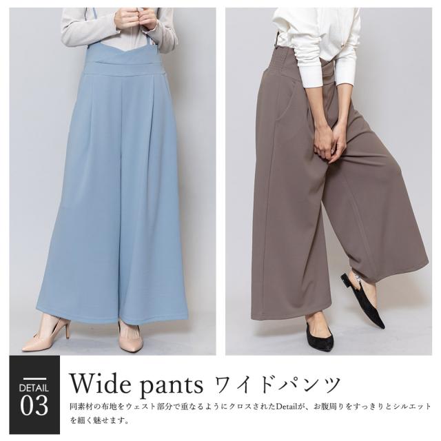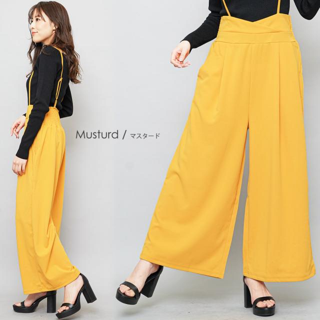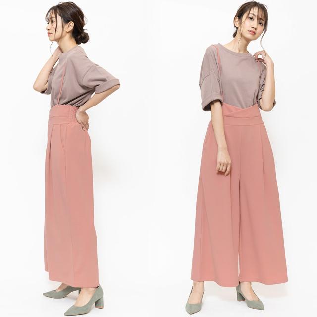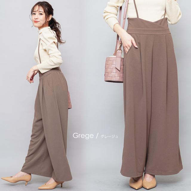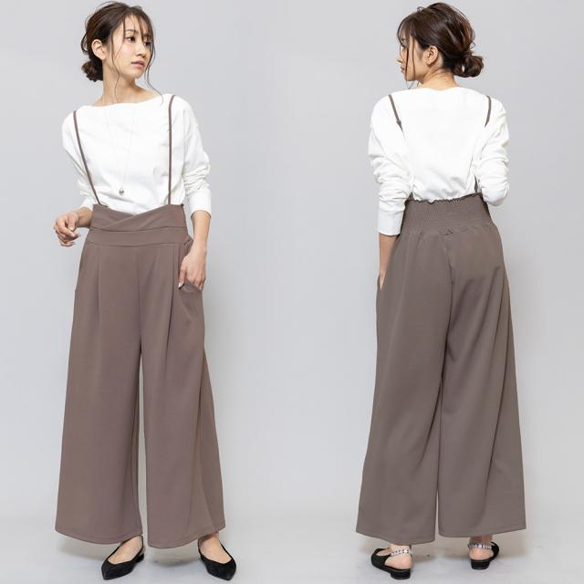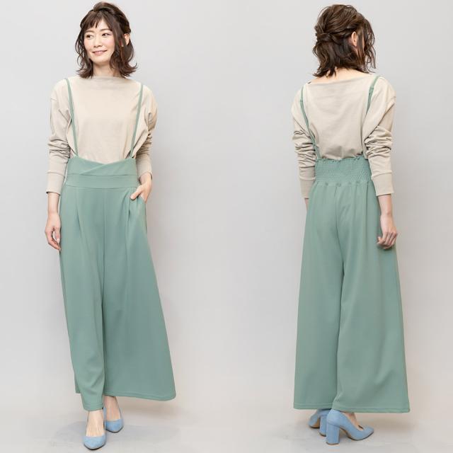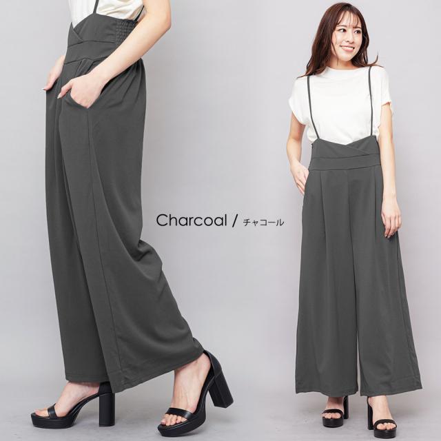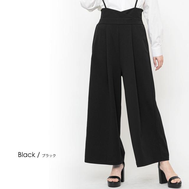 春新作 肩紐オールインワン コンビネゾン サロペット オールインワン ペアスキン ワイドパンツ M L レディース 春夏 ミリアンデニ メール便(郵3) p72106