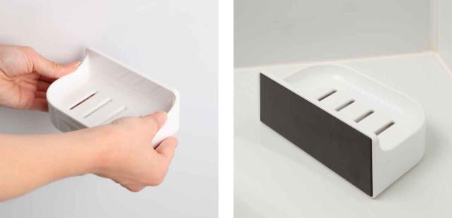 浴室の壁面を利用して収納できるソープラックです。ソープを浮かして収納するのに便利です。マグネットタイプのラックは付け外しが簡単なので、お好みの位置に収納を増やすことが出来ます。