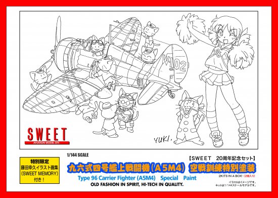 1/144スケール 未塗装 組立キット セット形態:九六艦戦空戦訓練特別塗装のキットに、藤田幸久(著)「SWEET MEMORY(九六艦戦編)」の、イラスト画集が付いた特製パッケージ入りの特別限定セット