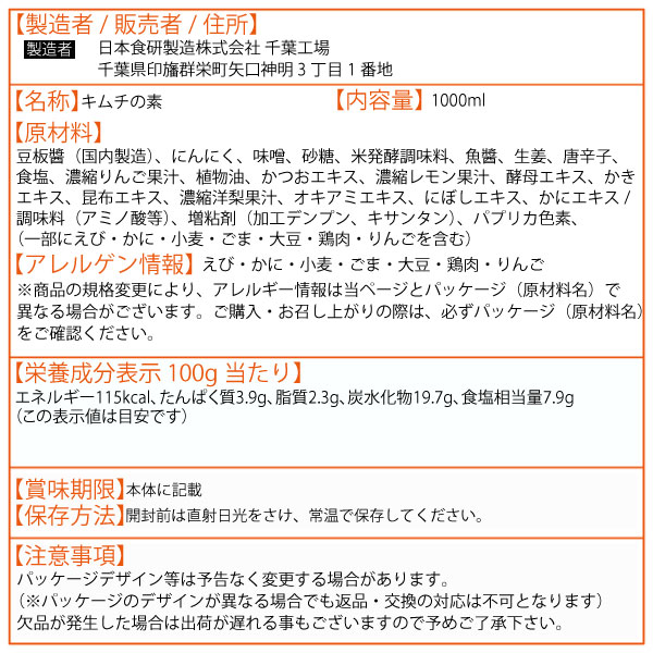 日本食研 キムチだれ 1L パーティー 大人数 業務用
