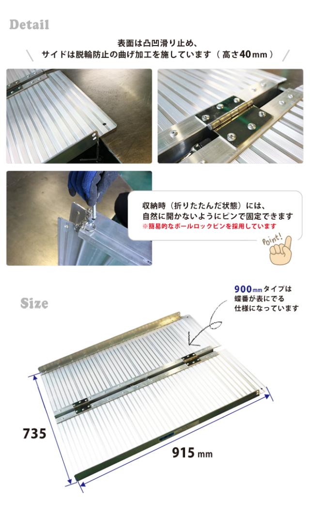 車いす用スロープ 900mm アルミスロープ 車椅子用 ハンディスロープ 段差解消 折りたたみ式 アルミブリッジ 介護用品 (ゴムマット プレゼント) KIKAIYA