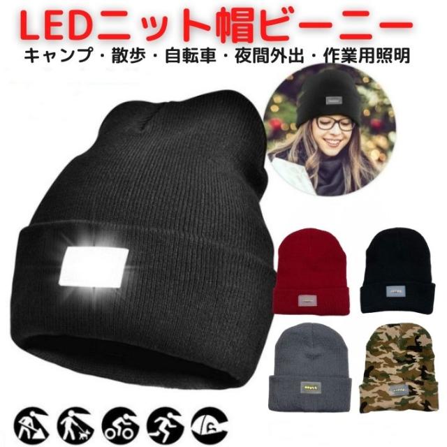 LEDライト ニット帽 ビーニー 帽子 キャップ 作業用帽子 LED電球 LED照明 ヘッドライト 懐中電灯 光る 夜間散歩 ランニング キャンプ アウトドア サイクリング 車 バイク 自転車 整備 照明 読書 防災対策 メンズ レディース おしゃれ プレゼント ポイント消化