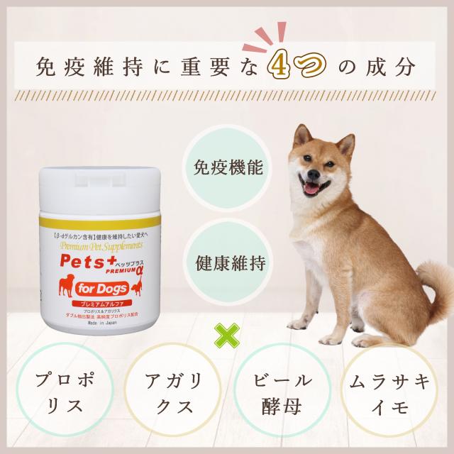 免疫力 を維持したい愛犬へ 犬用 サプリメント ペッツプラス プレミアムアルファ β-dグルカン含有 犬専用 プロポリス アガリクス 免疫 犬 アップ QOL