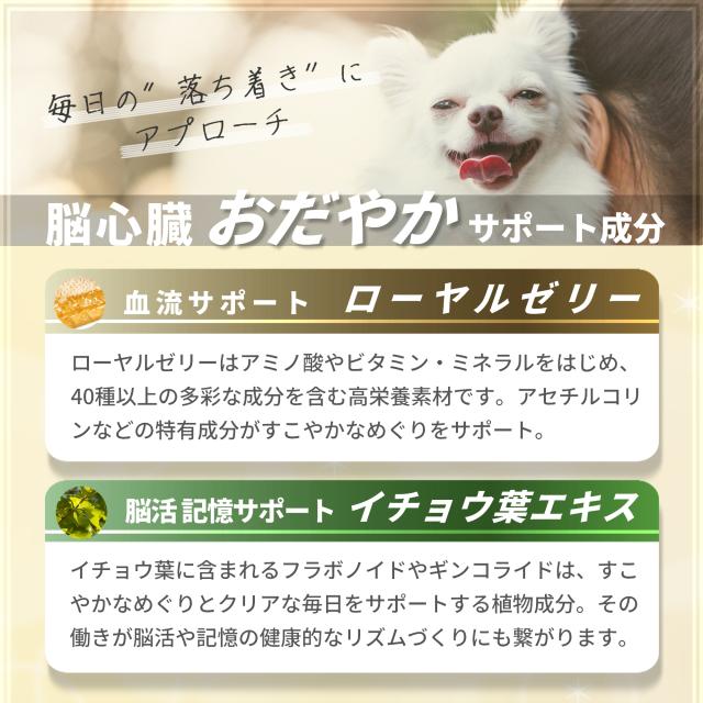 ●健康を維持し、あたまや循環器機能を正常に保つ犬用健康サプリメント。