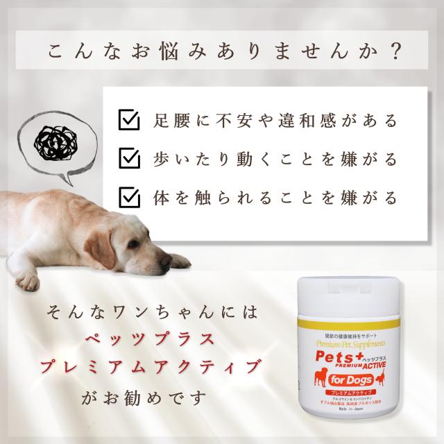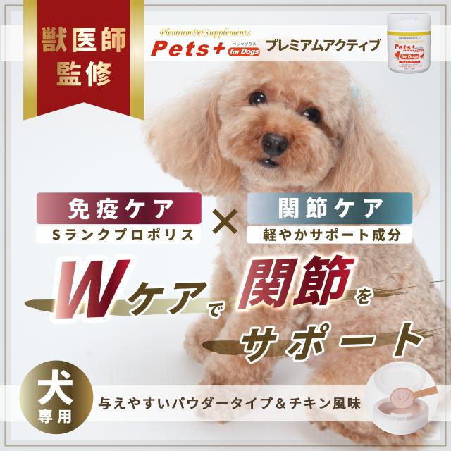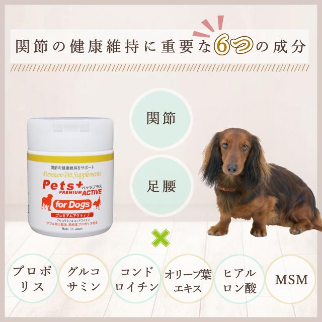 関節 の健康維持をサポート 犬用 サプリメント ペッツプラス プレミアムアクティブ 犬専用 プロポリス グルコサミン コンドロイチン 犬 サプリ 骨 腰 免疫力 ヒアルロン酸