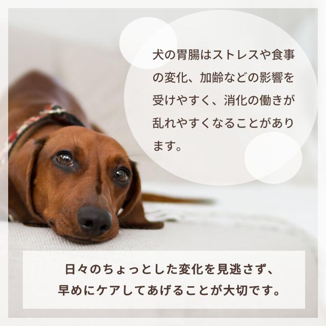 ●胃腸の健康や便通(排便の乱れ)が気になる場合や食欲にかげりがある犬にも与えていただけるサプリメント。