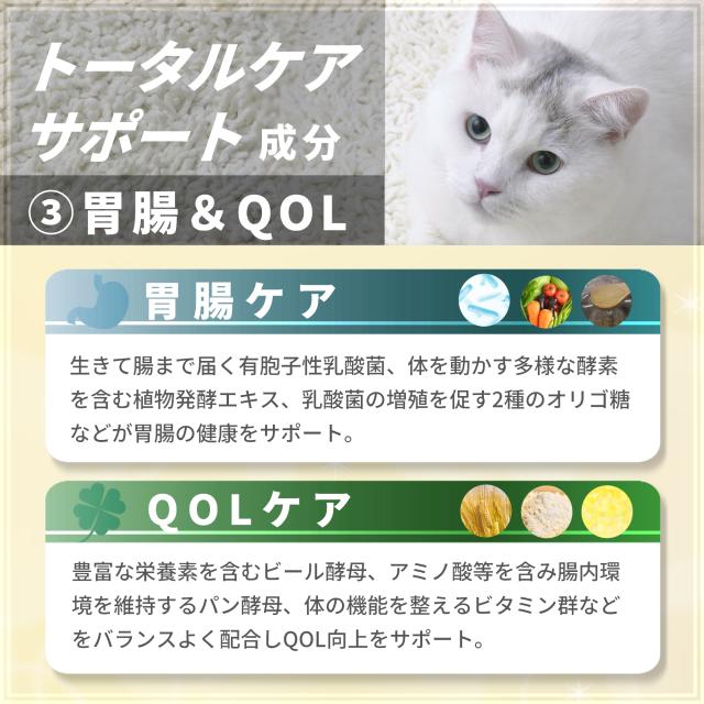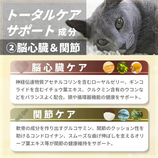 ●7歳以上の猫には必ず与えてほしい体全体のケアを考えた猫専用のプレミアムサプリメントです。