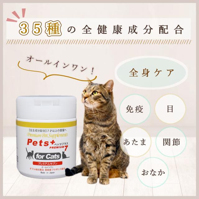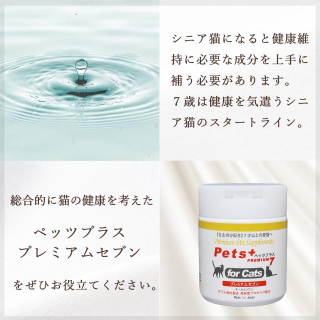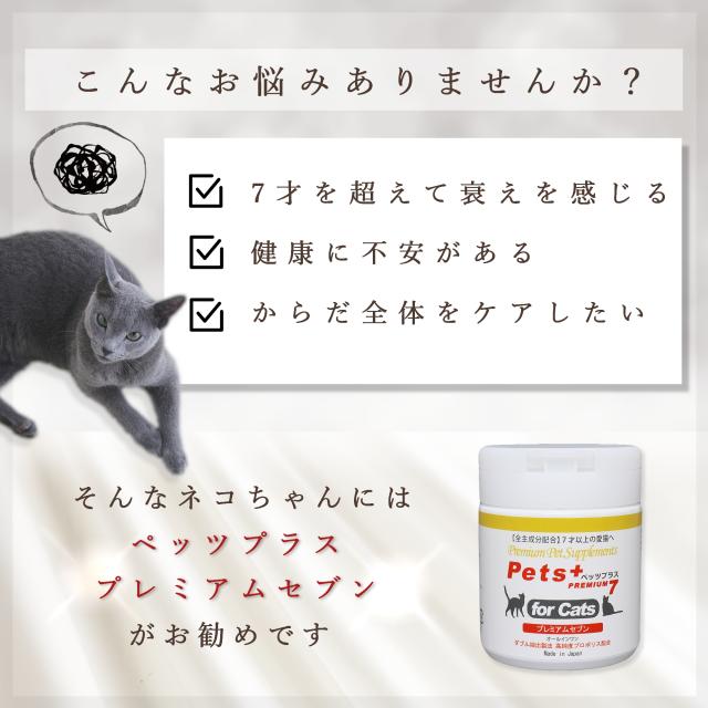 7才以上の愛猫へ 猫用 サプリメント ペッツプラス プレミアムセブン 全主成分配合 猫専用 プロポリス アガリクス イチョウ葉 グルコサミン ねこ アップ シニア 免疫 免疫力
