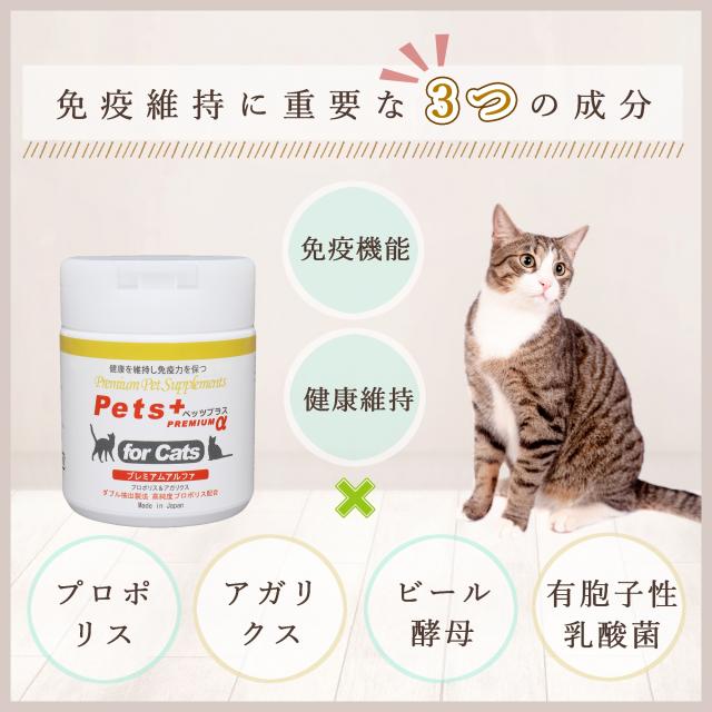 免疫力 を維持したい愛猫へ 猫用 サプリメント ペッツプラス プレミアムアルファ β-dグルカン含有 猫専用 プロポリス アガリクス 免疫 ねこ アップ QOL