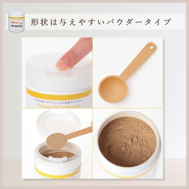 | 原材料 | 鰹節粉末、ビール酵母、デキストリン、カツオエキス、プロポリスエキス末、アガリクスエキス末、マタタビ末、ビタミンC、有胞子性乳酸菌 |