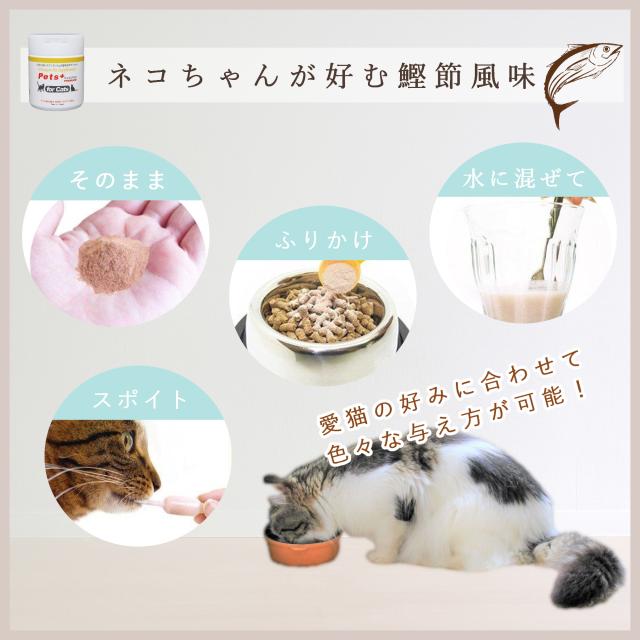 - 度々購入させていただいています。いつも早い発送で助かります。ありがとうございます。 こちらのサプリを振り掛けたご飯は、より美味しくなるようで。我が家の猫は喜んで食べてくれます。これで、健康も維持できる...