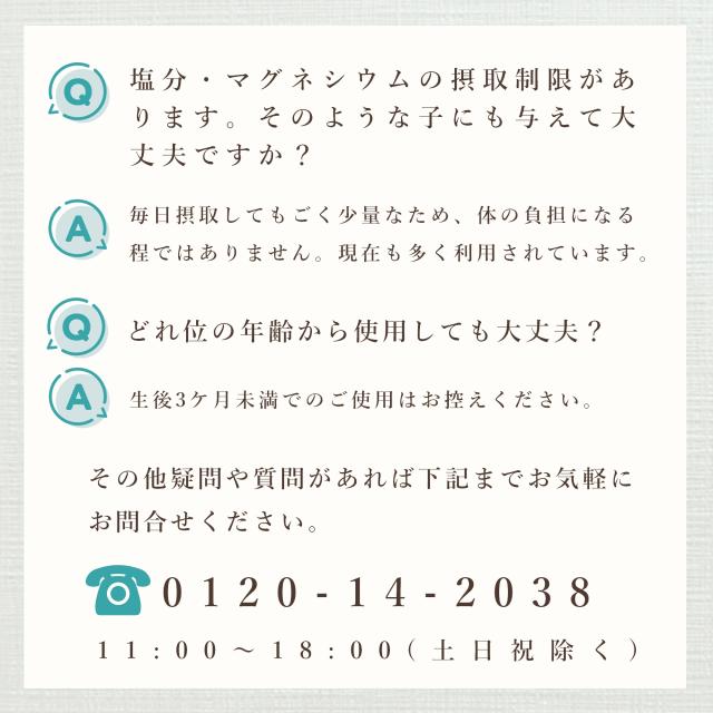 ・体質に合わない場合はご使用をお控えください。 ・直射日光や高温多湿な場所での保管はお控えください。 ・生後3ケ月未満でのご使用はお控えください。 |