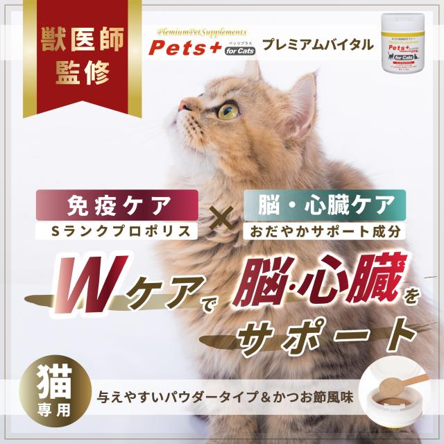 あたま の健康維持をサポート 猫用 サプリメント ペッツプラス プレミアムバイタル 猫専用 プロポリス ローヤルゼリー イチョウ葉エキス ねこ サプリ 認知