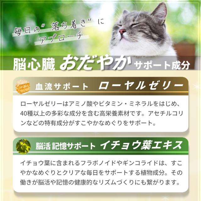 ●健康を維持し、あたまや循環器機能を正常に保つ猫用健康サプリメント。