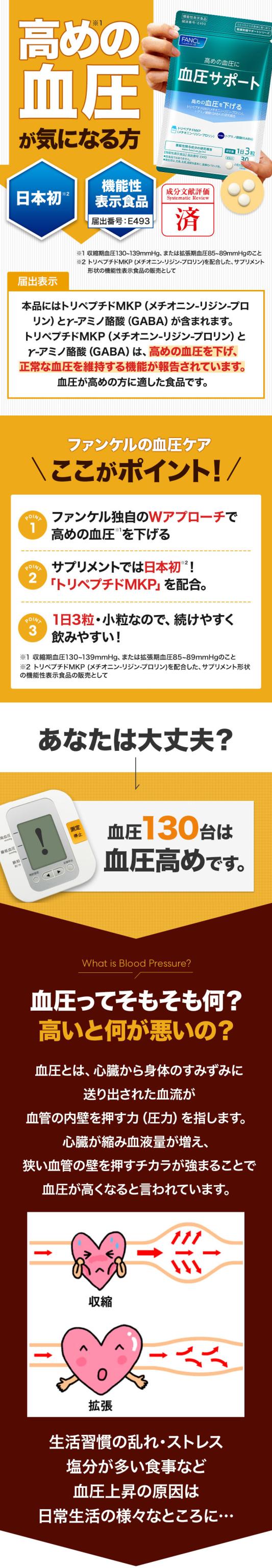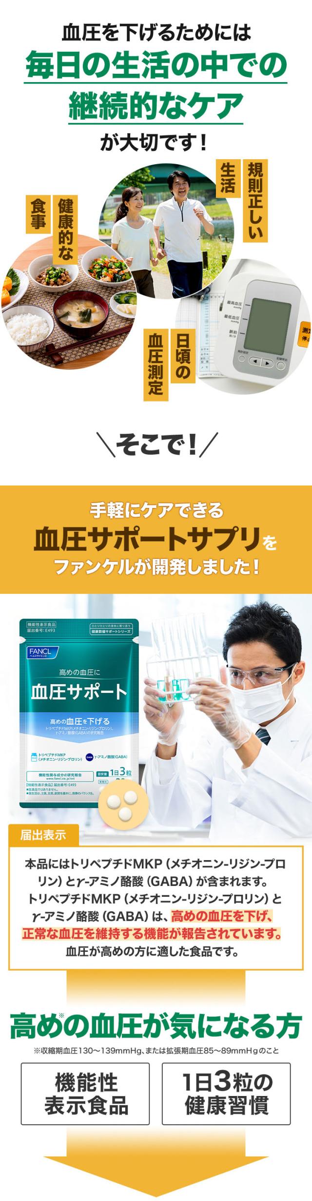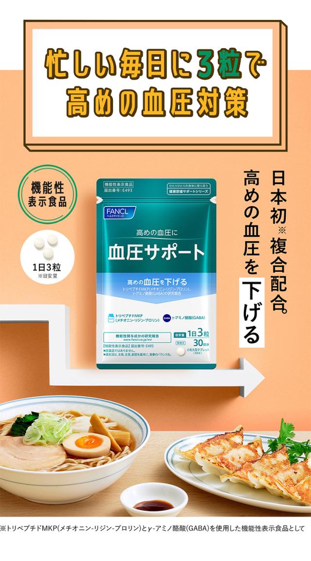 血圧サポート<機能性表示食品> 30日分 【ファンケル 公式】[FANCL サプリ サプリメント 血圧 女性 ギャバ GABA 健康食品 男性 サポート トリペプチド リジン プロリン アミノ酸 ペプチド 血圧サプリメント ヘルスケア 栄養 メチオニン 健康 お試し 1ヶ月分 塩分 錠剤 ]