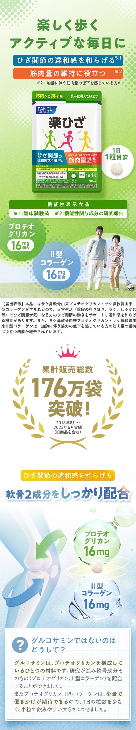 楽ひざ<機能性表示食品> 90日分 【ファンケル 公式】[FANCL サプリ サプリメント 女性 プロテオグリカン エイジングケア 健康食品 膝 男性 ひざ 関節 膝関節 ii型コラーゲン シニア 50代 60代 70代 膝サプリ ひざサプリ]
