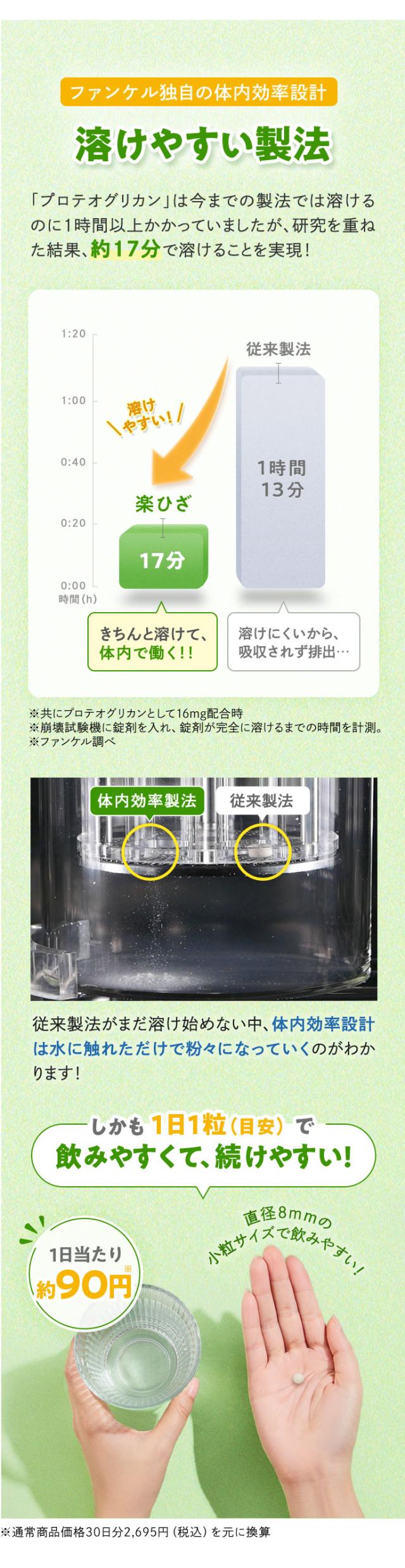 またプロテオグリカン、II型コラーゲンは、少量で働きかけが期待できるので、1日の粒数を少なく、小粒で飲みやすい大きさにできました。