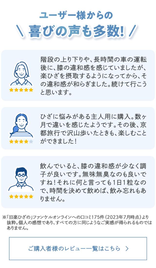※2024年7月16日までの口コミは届出番号C434「旧・楽ひざ」に関するものとなります。