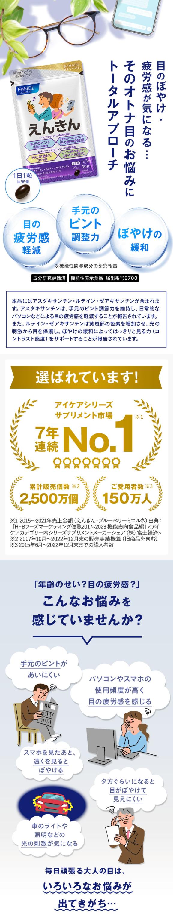えんきん 30日分 <機能性表示食品>FANCL ファンケル 公式 サプリ サプリメント ポイント増量 目 ルテイン アスタキサンチン ゼアキサンチン 男性 アイサプリ アイケアサプリ アイケア ぼやけ ルテインサプリ ルテインサプリメント 目のケア 眼 健康 40代 50代 60代