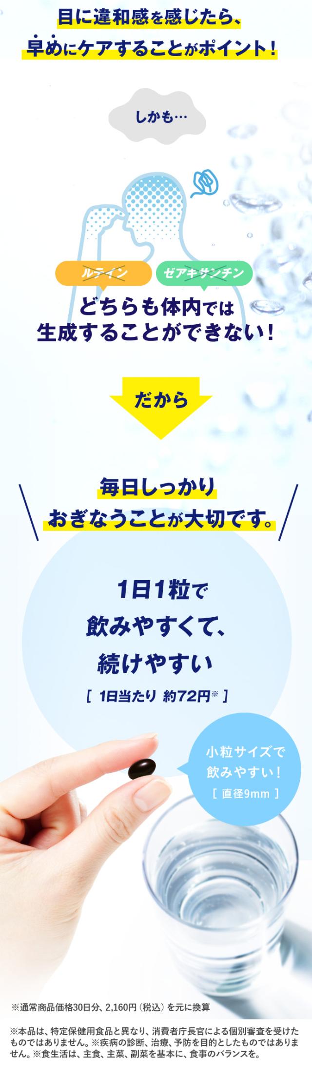 アスタキサンチン:6mg、ゼアキサンチン:2mg、ルテイン:10mg