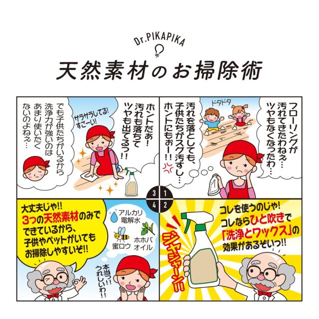 洗浄とワックス効果のクリーナー 300ml フローリング 掃除 アルカリ電解水 天然 二度拭き 不要 住宅洗剤