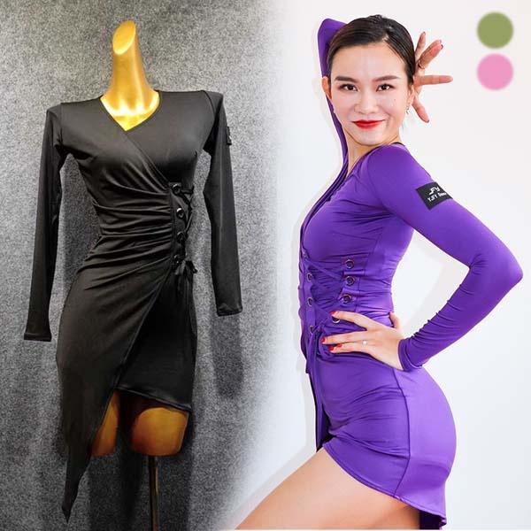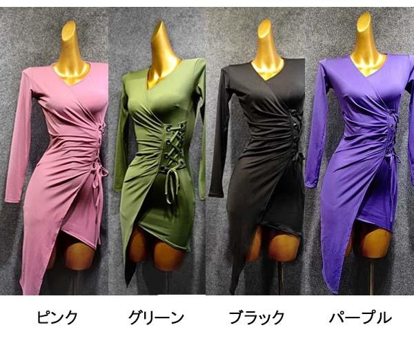 社交ダンス ラテンドレス 長袖 ラテンダンス ダンス衣装 ワンピース 練習着 チャチャチャ ラテン ステージ衣装 演出着 演出用 舞台 S/M/L/2L ピンク/パープル/グリーン/ブラック da283t2t2s3