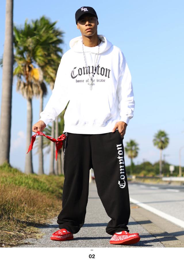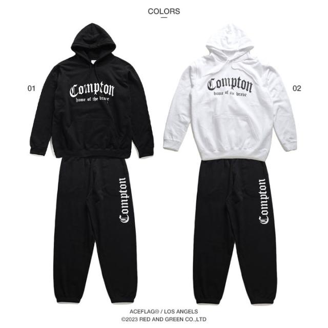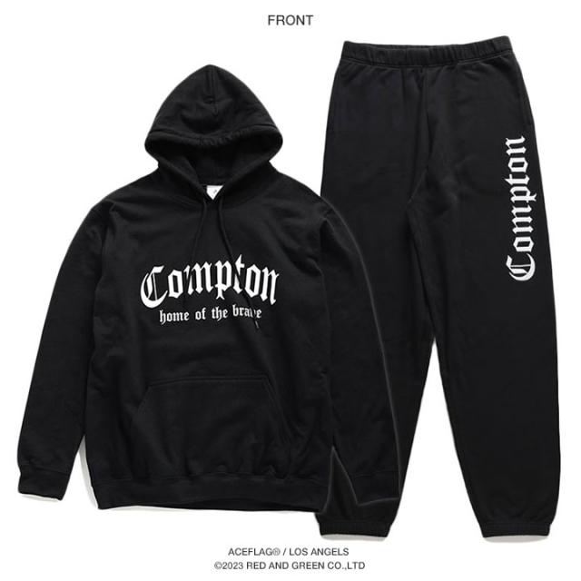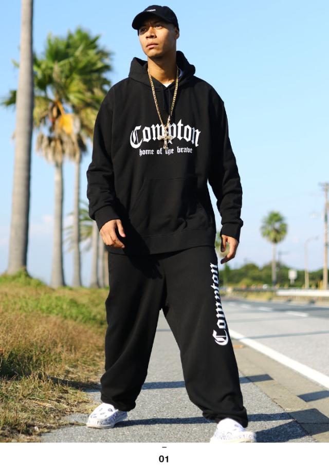 N.W.A.を輩出し、Straight Outta Comptonの舞台としても知られている「Compton」をドロップしたパーカーとスウェットロングパンツの上下セット。