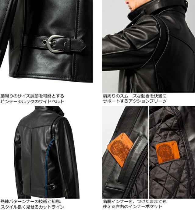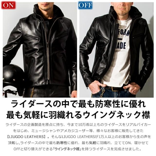 Liugoo Leathers 本革 襟ボアハイネックシングルライダースジャケット WNG01A