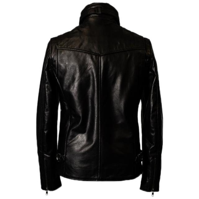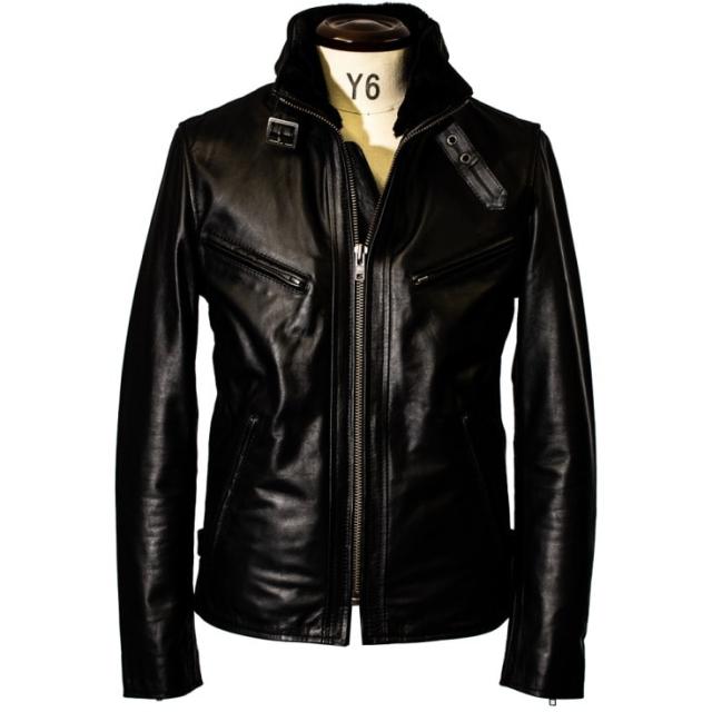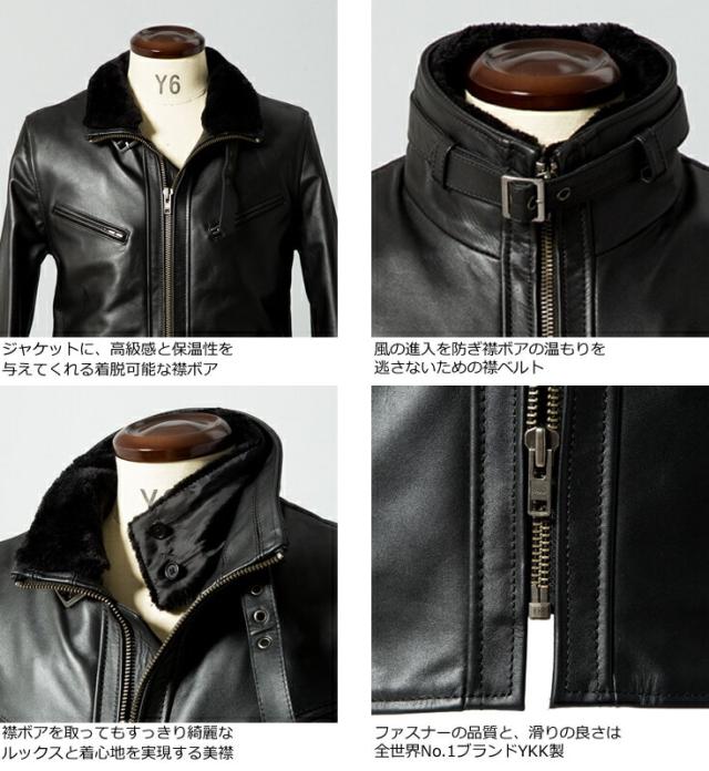 リューグー(LIUGOO)/Liugoo Leathers 本革 襟ボアハイネックシングルライダースジャケット WNG01A