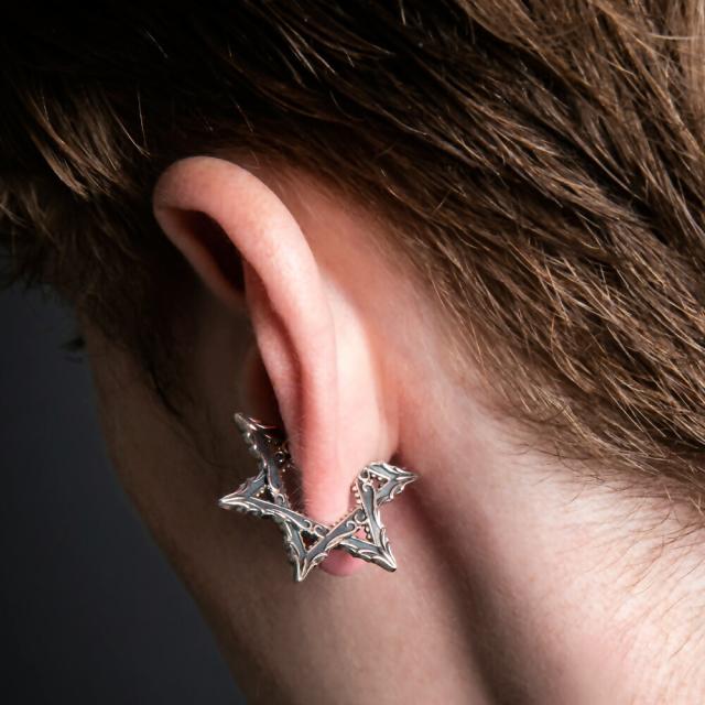 六芒星に繊細なアンティーク装飾を施したイヤーカフ。