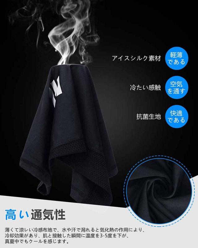 【冷感素材】快適なアイスシルク素材を採用しています、水や汗で濡れると気化熱の作用により冷却効果があり、肌と接触した瞬間に温度を3−8度程下がり、