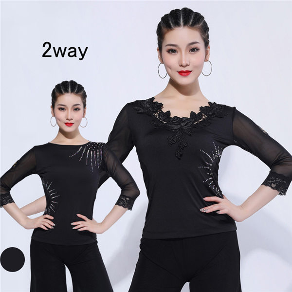 2WAY 社交ダンス トップス ラテン ダンストップス 社交ダンス衣装 上着 競技着 モダン ラテンダンス用上着 レディース 女性性用 ダンス衣装 上着 ダンス 社交 練習着 ワルツ チャチャチャ レッスン 着 ステージ 衣装 演出着 袖あり