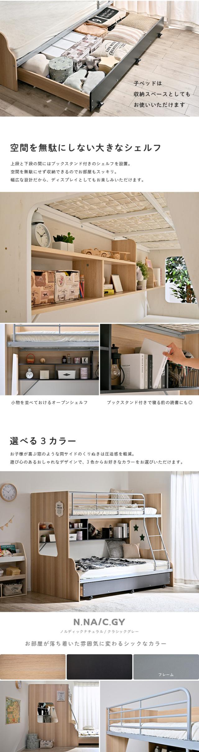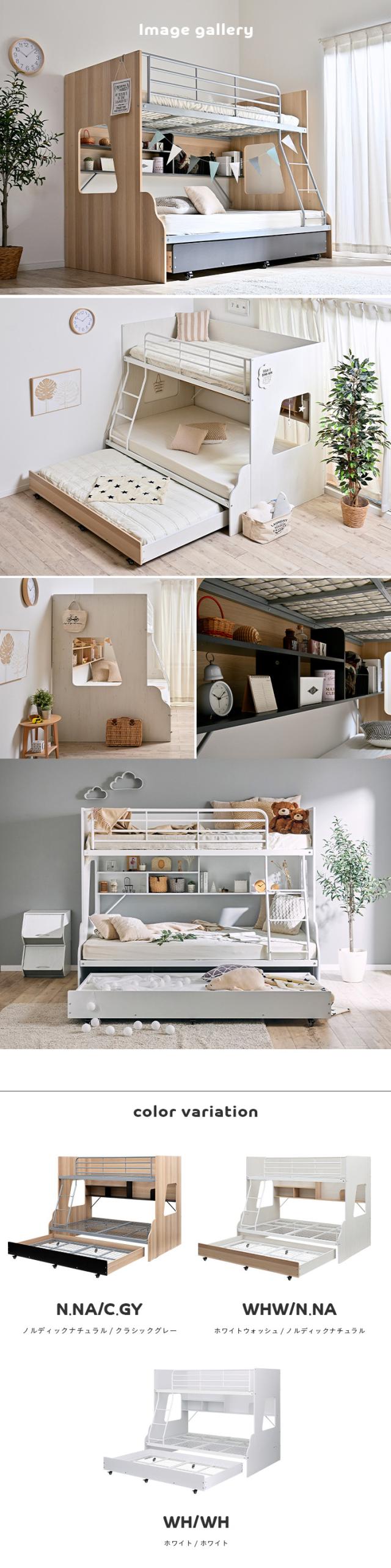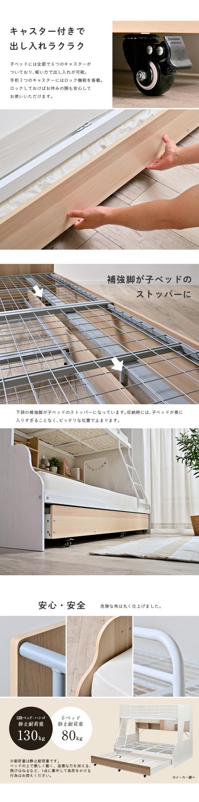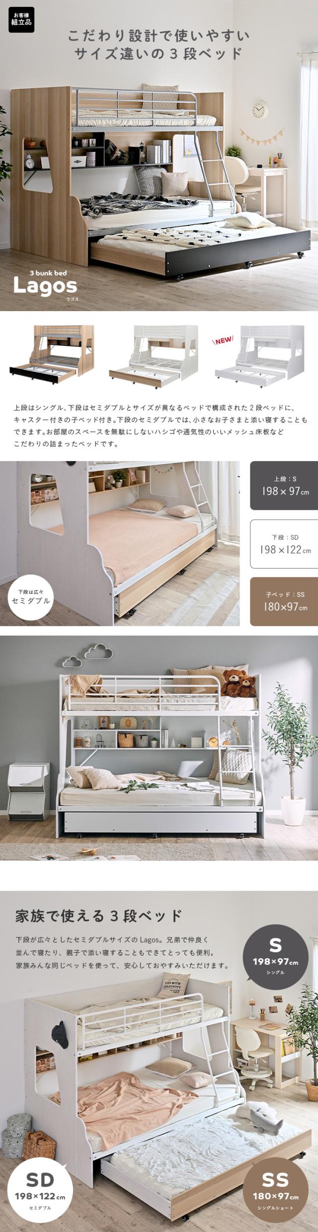 【下段セミダブル】スライド 三段ベッド 3段ベッド ロータイプ 親子ベッド キャスター付き 親子二段ベッド 親子2段ベッド 親子三段ベッド 親子3段ベッド 木製 スチール おしゃれ 親子 キッズ Lagos(ラゴス) 3色対応