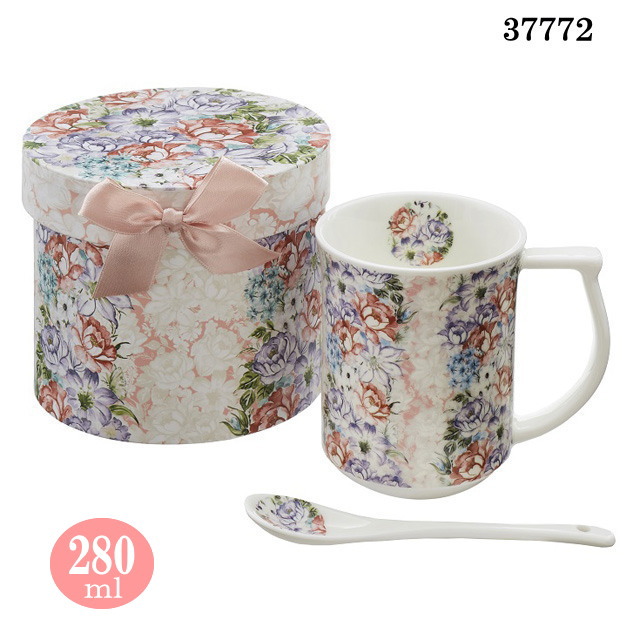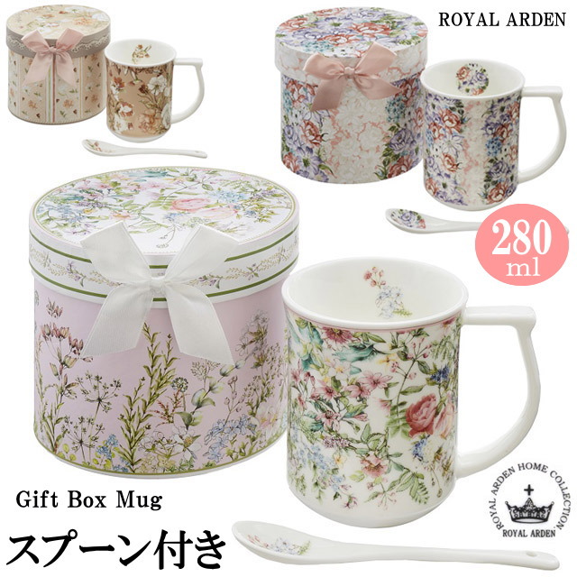 マグカップ 花柄 フラワー 薔薇柄 ロイヤルアーデン 薔薇 箱入り 陶器 食器 コーヒーカップ かわいい おしゃれ スプーン付き