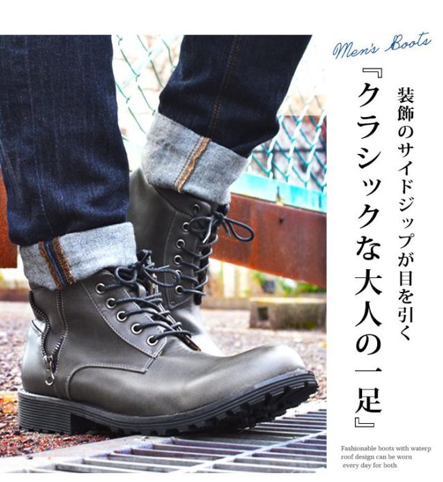 スタイリッシュなサイドジップデザインのエンジニアブーツが登場!防水テープを使用した4cm×4時間の防水設計で雨の日も安心♪アウトソールは屈曲性が良く足の動きにフィット。グリップ性の強い防滑ソールを使用し滑りにくい設計に。履き心地が良いなカップインソールは、取り外して洗えるので清潔に保てます。内側の生地の一部に起毛素材を使用し寒い日でも暖かく快適。チェック柄で見えない部分もこだわっています。アンティーク加工を施したアッパーデザインは重厚感とこなれ感を演出します。
