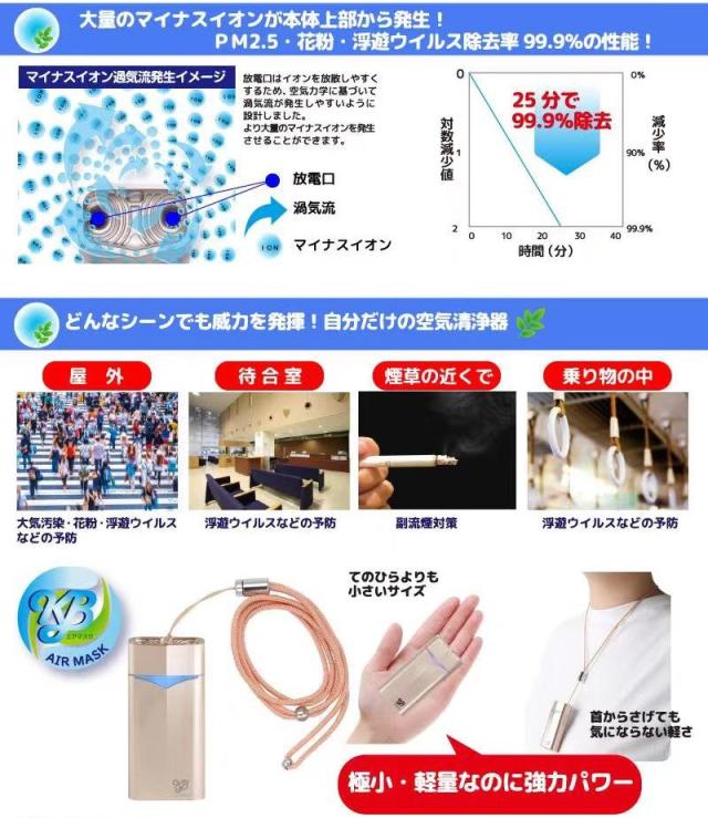 【送料無料】 KB AIR MASK (KBエアマスク) 空気清浄器 超小型マイナスイオン発生器/カラー:サクラピンク/ブランド:KB AIR MASK