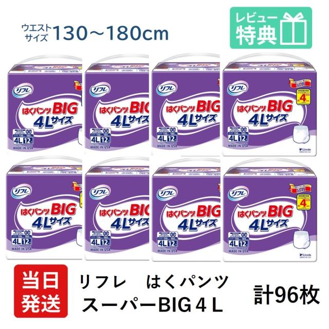 | 製品名 | リフレ 大きい人のはくパンツ スーパーBIG4L 12枚×8袋 |
