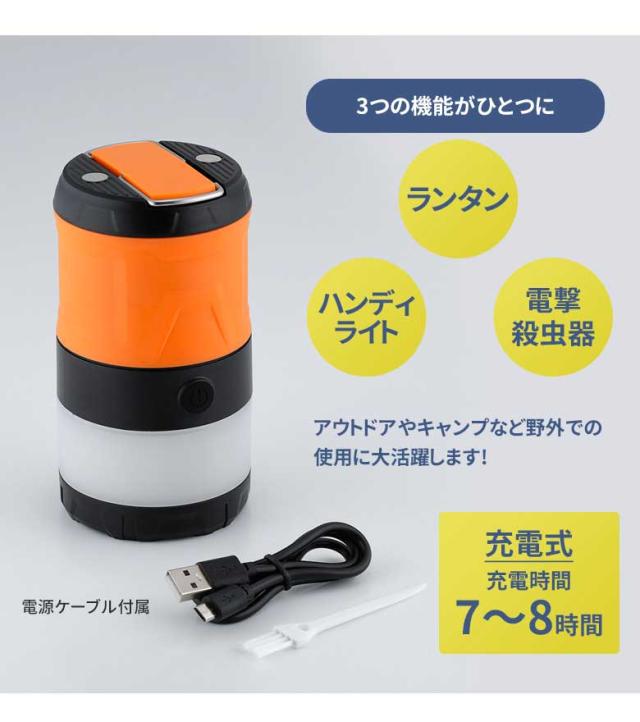 充電式電撃殺虫器 ライト&ランタン 充電式 アウトドア キャンプ レジャー 夏 バーベキュー テント 屋外 野外 防災用 防災グッズ 備蓄用 緊急用 非常用 防虫 駆除 ぶら下げ セーブインダストリー