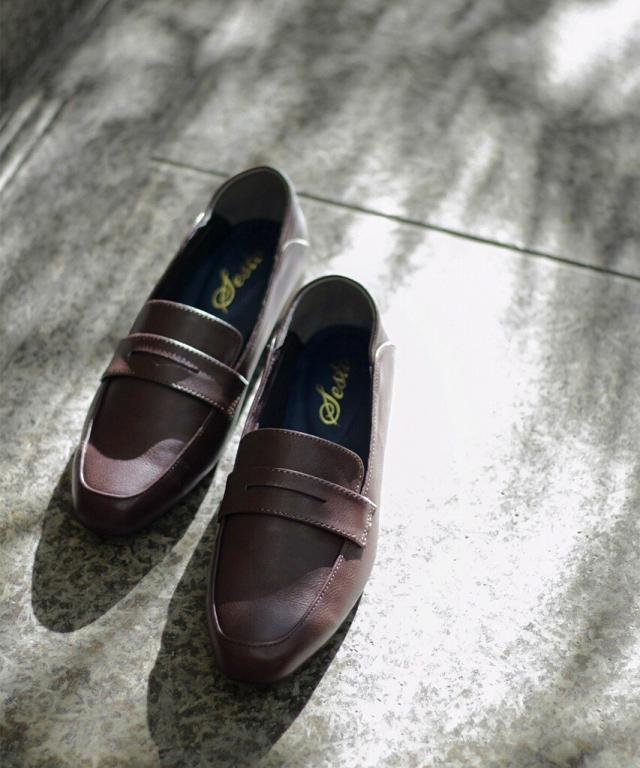 スタンダードでシンプルなコインカットのデザインなので、プライベートではもちろんオフィスコーデにも活躍、カジュアルにもきれいめにも使いやすい1足です。